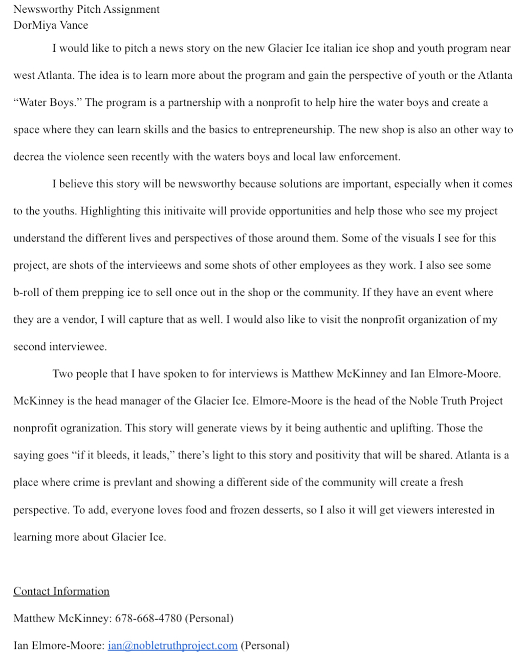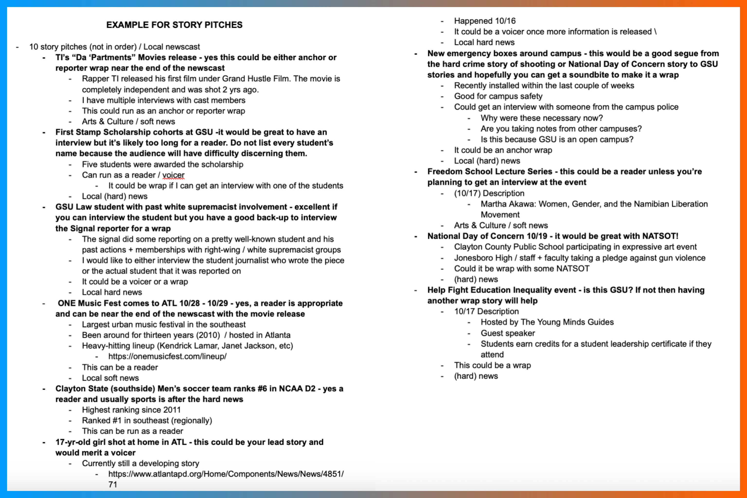 This gallery showcases my news writing and gathering skills. This section also includes story pitches that I was tasked to deliver in class for various projects. In these course, I was able to refine my news writing through weekly practices and assignments during the Fall ’22 and ’23 semesters.